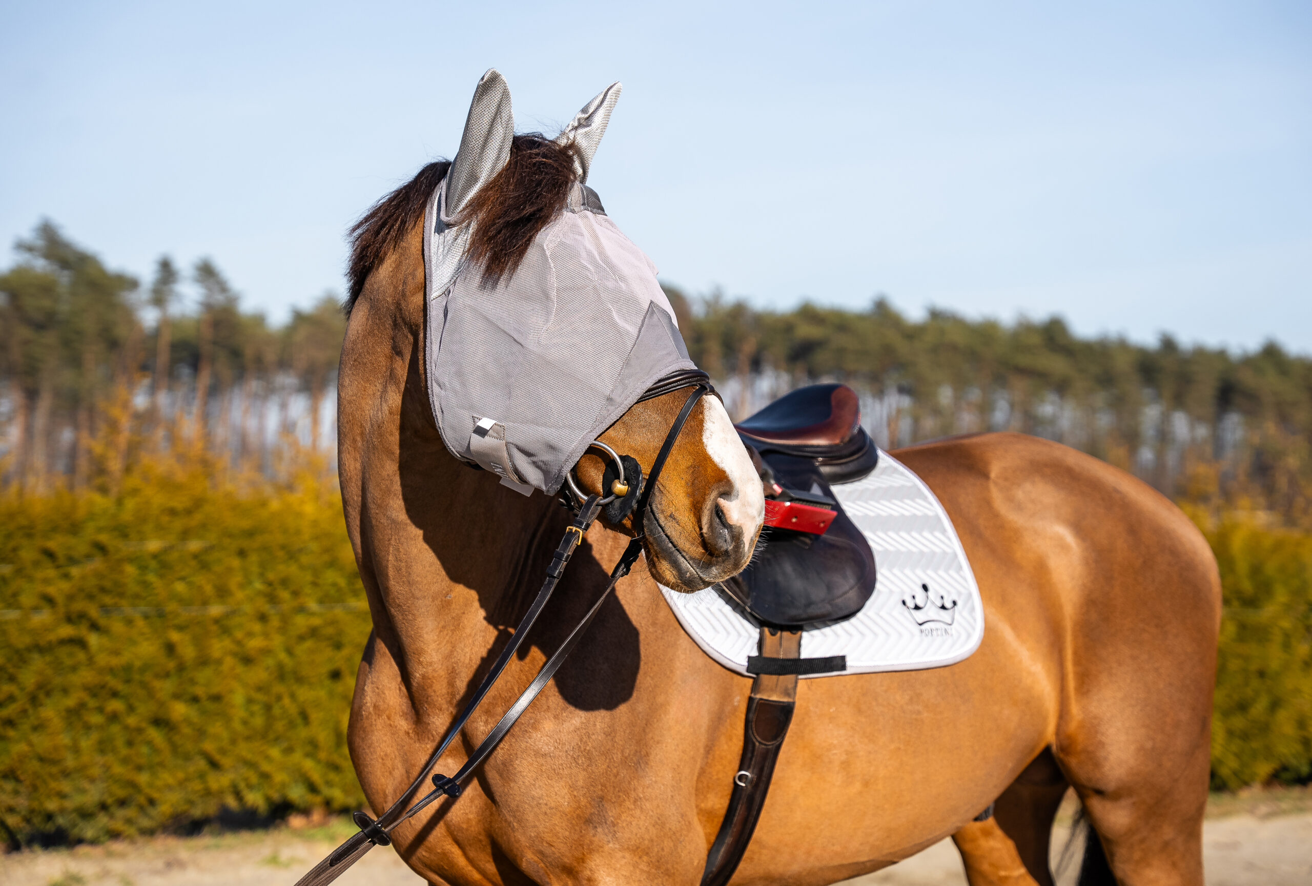 Give your beloved horse the touch of elegance and protection it deserves with our exquisite fly hood made from high quality and durable material. Our fly hood, handmade from fine gold and silver, not only offers a stylish addition to your riding equipment, but also reliable protection against annoying insects. Every detail of our fly hood has been carefully designed to meet the highest standards. The robust material guarantees longevity and durability, while the elegant design gives your horse a touch of luxury. Whether during training, on the tournament field or in the stable – our fly hood offers your horse optimal protection from flies and other insects without sacrificing style. Invest in quality and style for your loyal riding horse with our exclusive fly hood. Get ready to turn heads while ensuring your horse shines in comfort and elegance. Order yours today and experience the perfect combination of functionality and aesthetics for your horse.